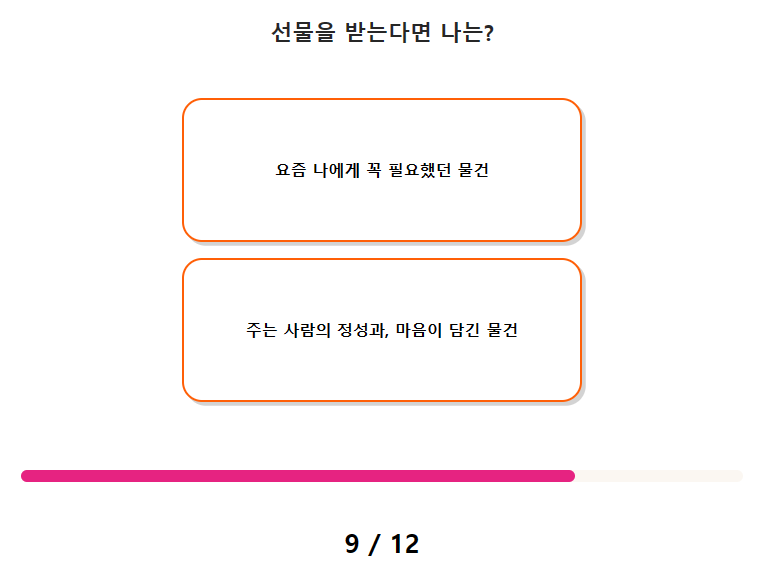 9. 선물을 받는다면 나는? 10. 약속이 있어, 외출을 할 때 나는?