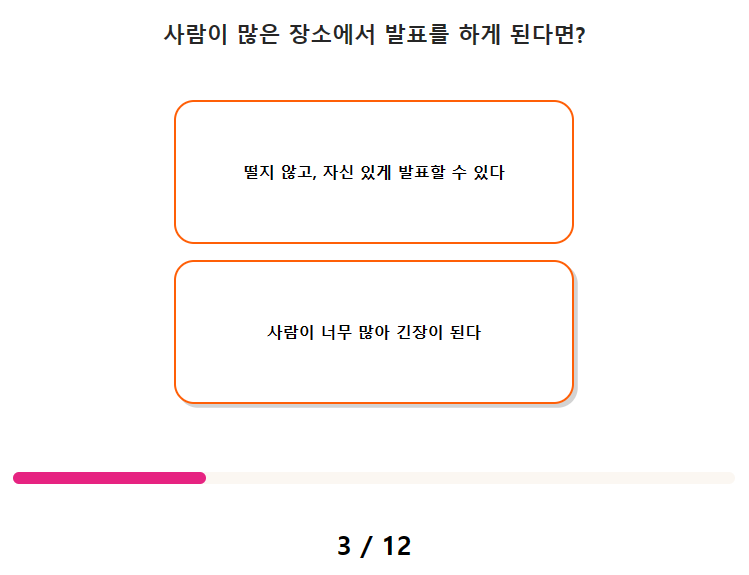 케이테스트 네온사인 테스트 질문(문항) 수는 총 12가지이며, 테스트 소요 시간은 총 2분~3분 정도 걸립니다.