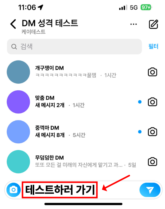 DM(디엠)은 인스타그램이나 트위터 등 SNS에서 자주 사용되는 단어(용어)입니다. 테스트에 대해서 소개하기 앞서 여러분들은 성격 테스트, 심리, MBTI 관련된 테스트를 하시는 것을 좋아하세요? 이 테스트는 MBTI로 기반된 테스트이기 때문에 다들 재미 삼아 해보셔도 좋습니다.
