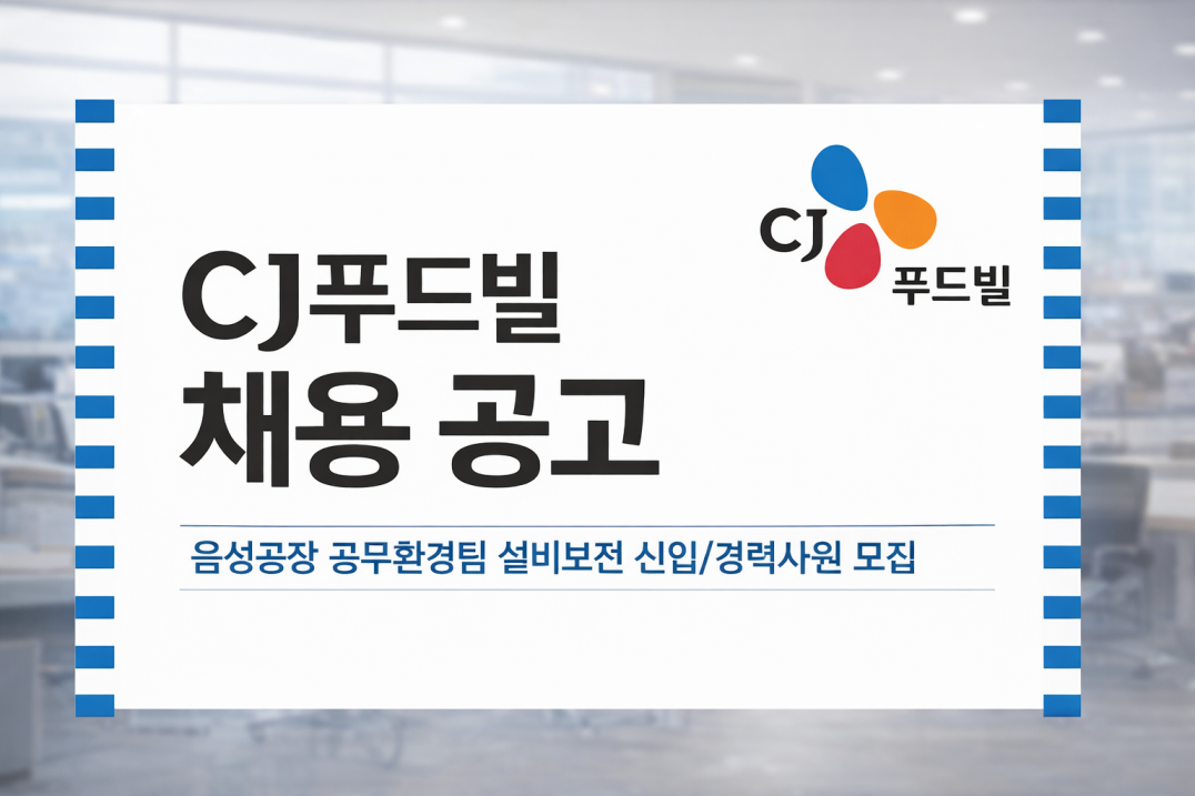 오늘은 CJ푸드빌 음성공장 공무환경팀 설비보전 채용을 기준으로, 지원 전에 꼭 봐야 할 핵심 포인트를 취준생·대학생 눈높이에서 정리해드립니다. 현장 중심 커리어를 고민 중인 분, 설비보전·유틸리티 직무로 취업 또는 이직을 생각하고 있다면 이 글을 체크리스트처럼 활용해 보세요.