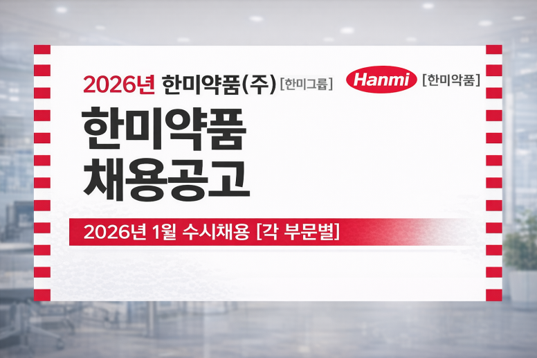 오늘은 2026년 한미약품(주) [한미그룹] 2026년 1월 수시채용 [각 부문별] 공고를 채용기간 · 직무 · 자격요건 · 수행업무 · 근무지 · 고용형태 · 워라벨 · 자격증 중심으로 보기 쉽게 정리해드릴게요.