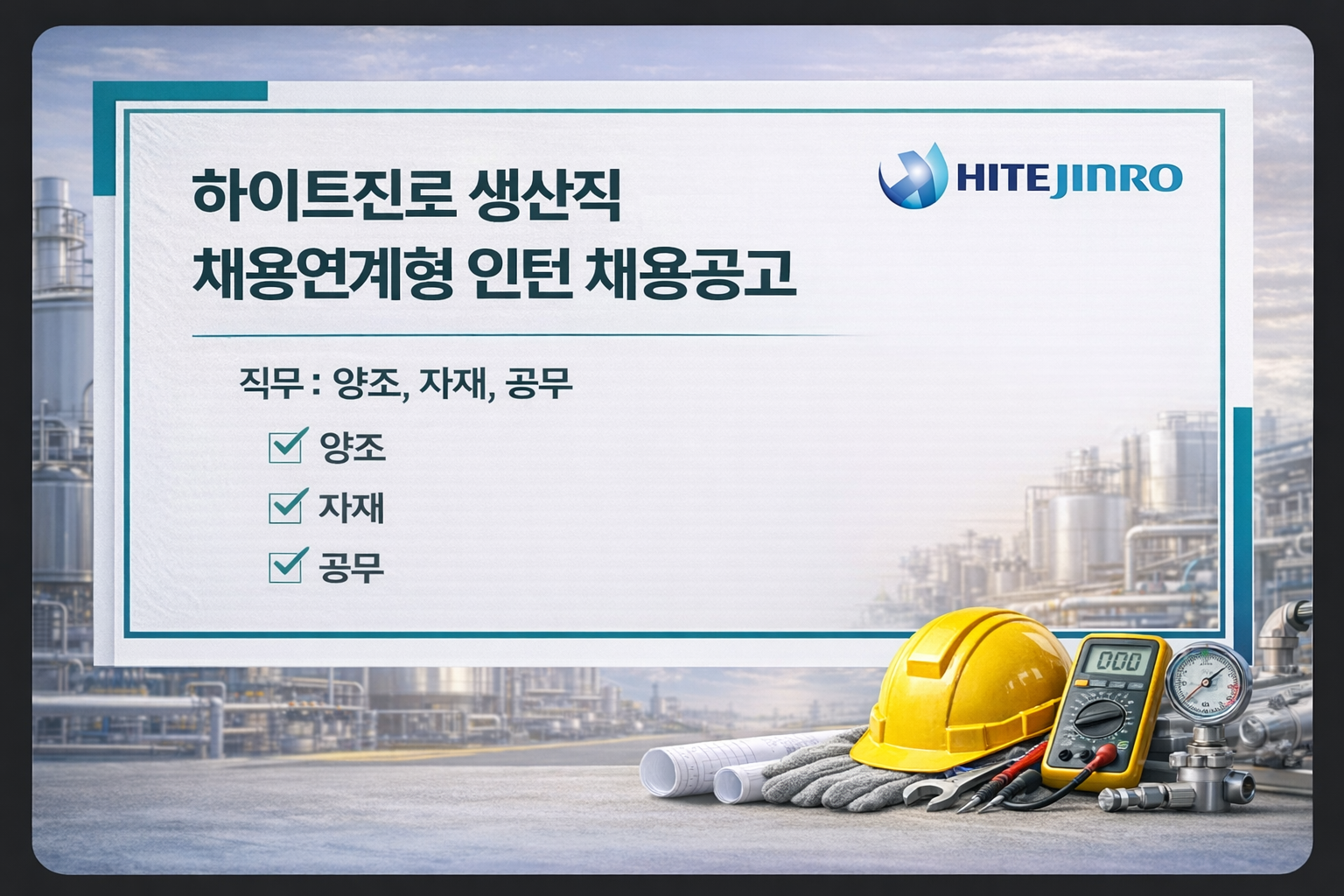 하이트진로 생산직 채용 연계형 인턴 공고는 청주 근무 기준으로 지원 마감/기간은 공고 기준 미기재입니다. (아래 공식 링크에서 최종 확인 권장)