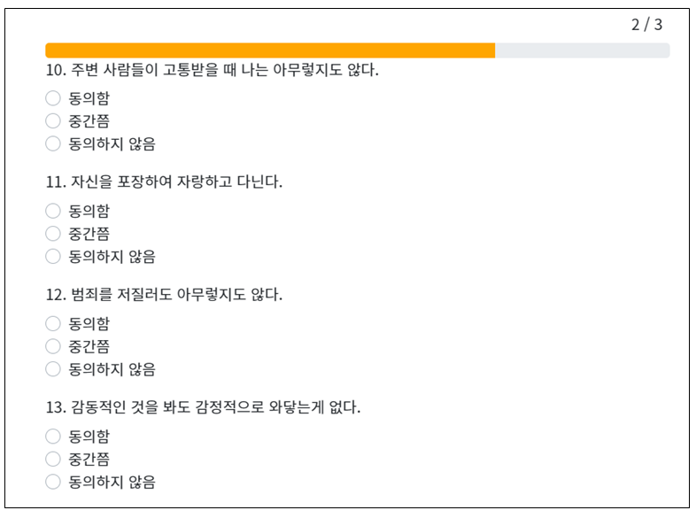 지금부터 사이코패스 테스트 시작을 해 보겠습니다.