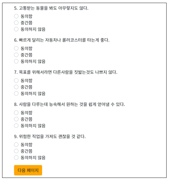 지금부터 사이코패스 테스트 시작을 해 보겠습니다.