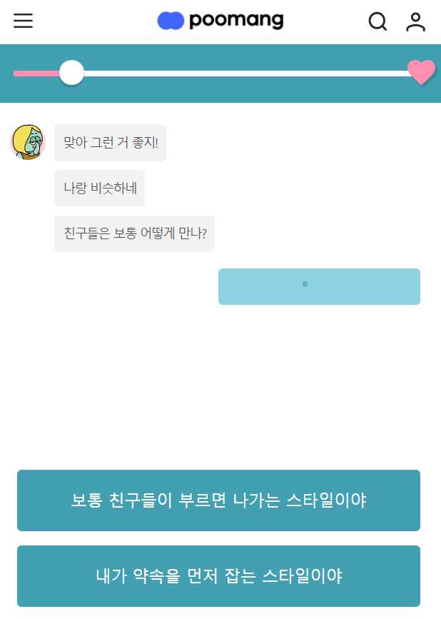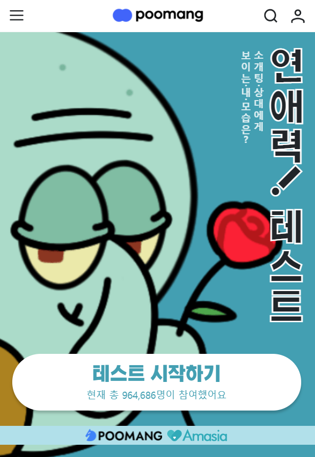 POOMANG(푸망)이라는 사이트는 심리테스트나 요즘 HOT한 테스트를 간단하고 재미삼아 할 수 있습니다.