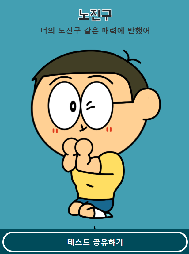 연애력 테스트 결과는 노진구가 나왔습니다.