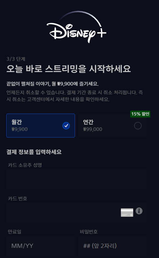 디즈니 플러스를 보실 분들은 위의 그림을 다 입력해 주시고 동의하고 구독하기를 눌러주시면 됩니다.
