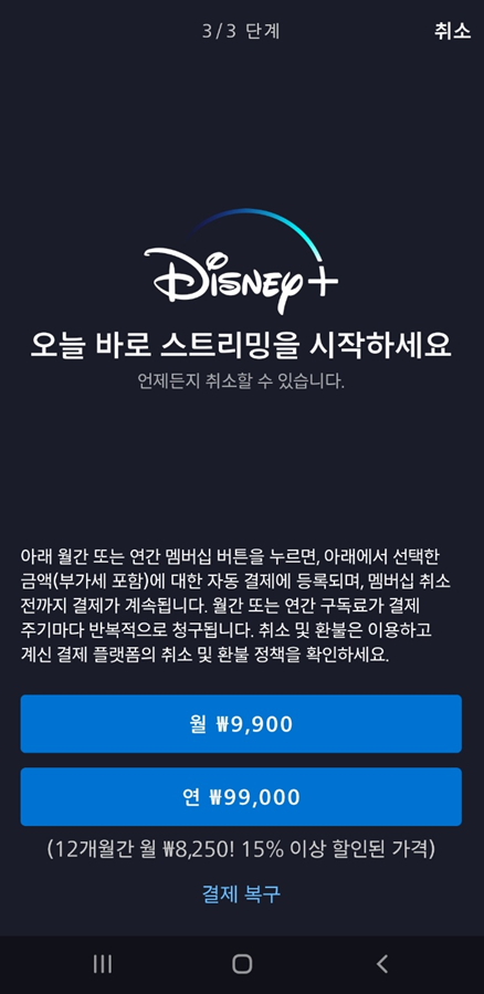 이상 스마트폰에서 디즈니+ 회원가입 방법에 대해서 알아보았습니다.
