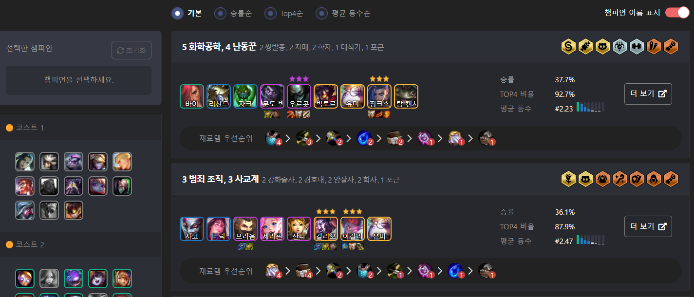 재료 템 우선순위도 나와 있습니다. 위의 천상계 덱을 참고하셔서 롤토체스 1위를 한 번쯤 해 보시는 것도 좋은 방법인 것 같습니다.