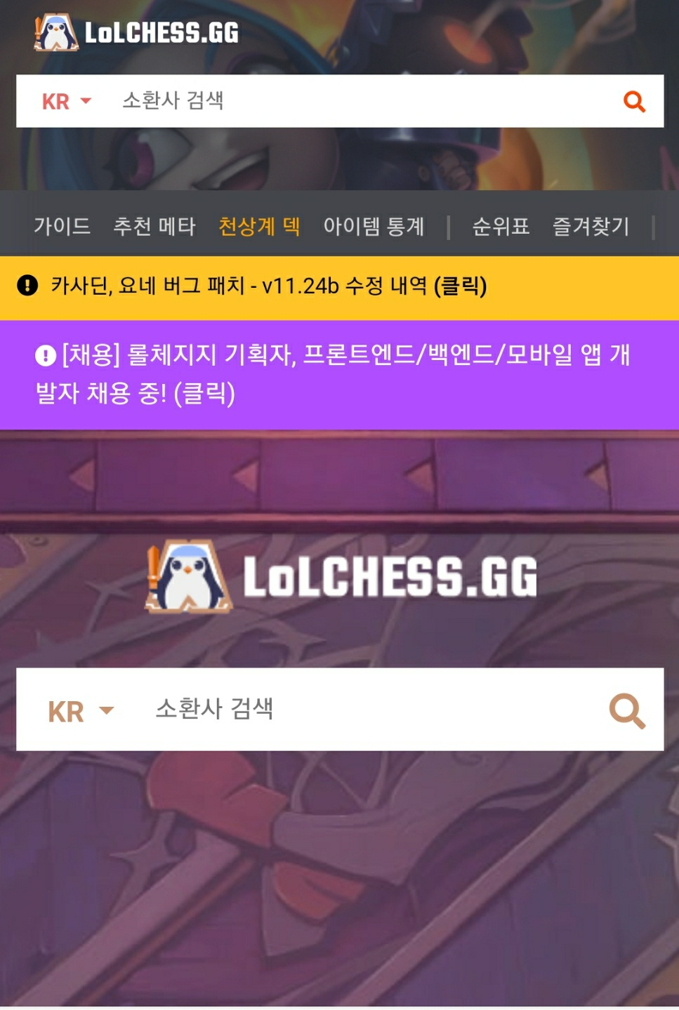 ↓ 아래의 사이트에 들어가시면 롤체 지지가 나옵니다.
