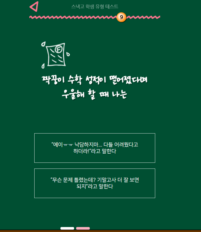 이렇게 스낵고 학생유형 테스트를 마쳤습니다.