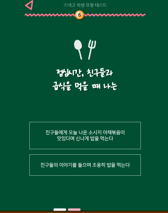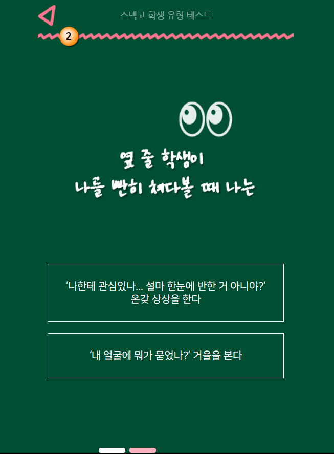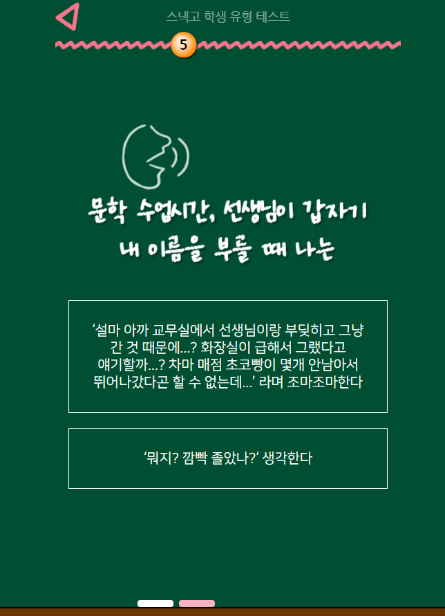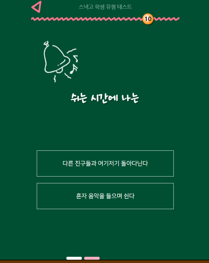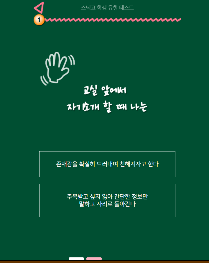 지금부터 전학와서 생긴일 '스낵고 학생 유형 테스트'를 시작해 보겠습니다.