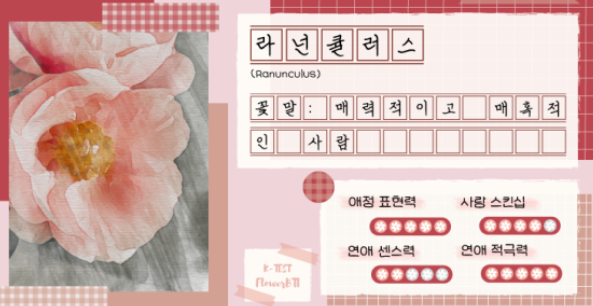 바로 연애 성격을 꽃으로 나타낸 플라워 BTI 심리테스트입니다.