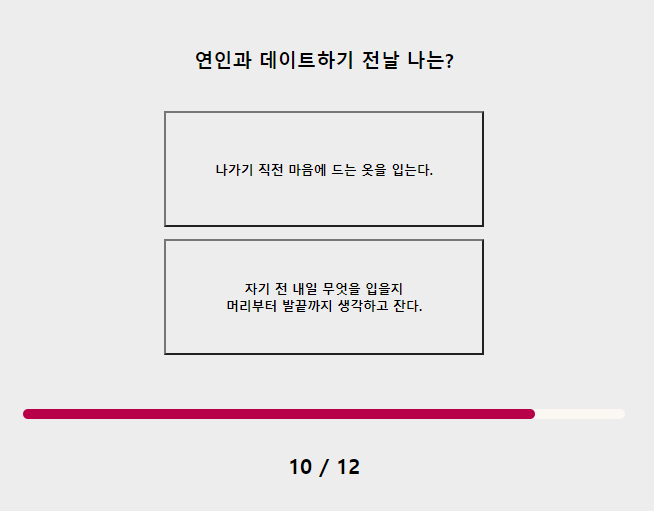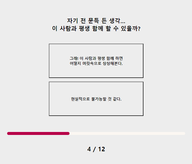 문제와 답은 간단한 형식으로 되어 있어 자신이 마음에 드는 답을 골라서 선택하는 형식입니다.