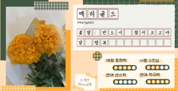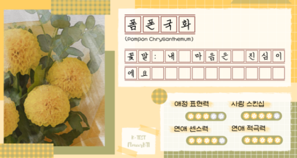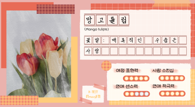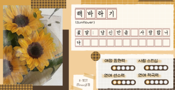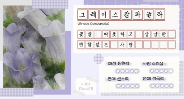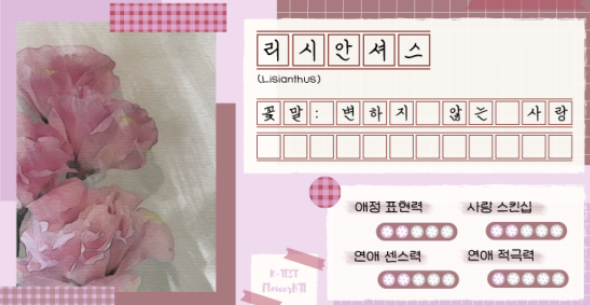 MBTI를 기반으로 하여 나에게 맞는 꽃과 꽃말, 성격, 연애에 대한 테스트로 하여 결과를 알려주는데요.