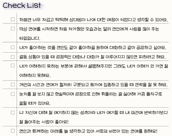 스타티스의 꽃에 대한 연애 성격 Check List에 대해서도 알아보겠습니다.