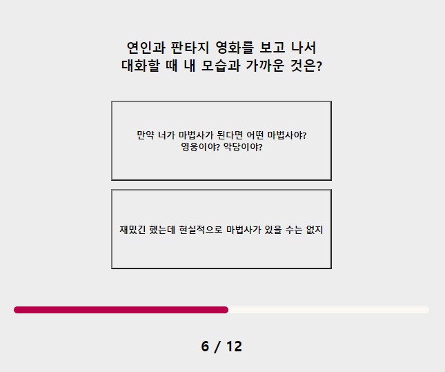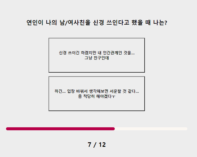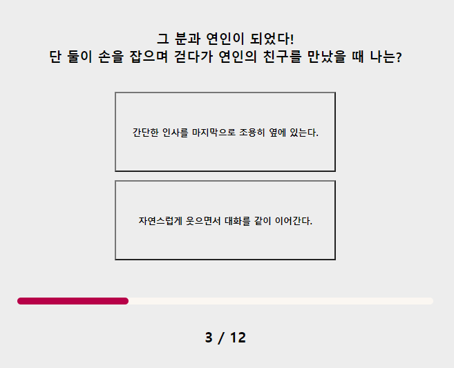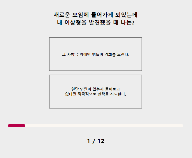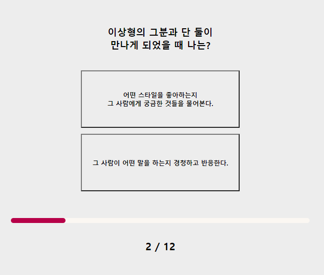 12번까지 문제를 다 체크하셨다면 결과를 알아보실 수 있습니다.