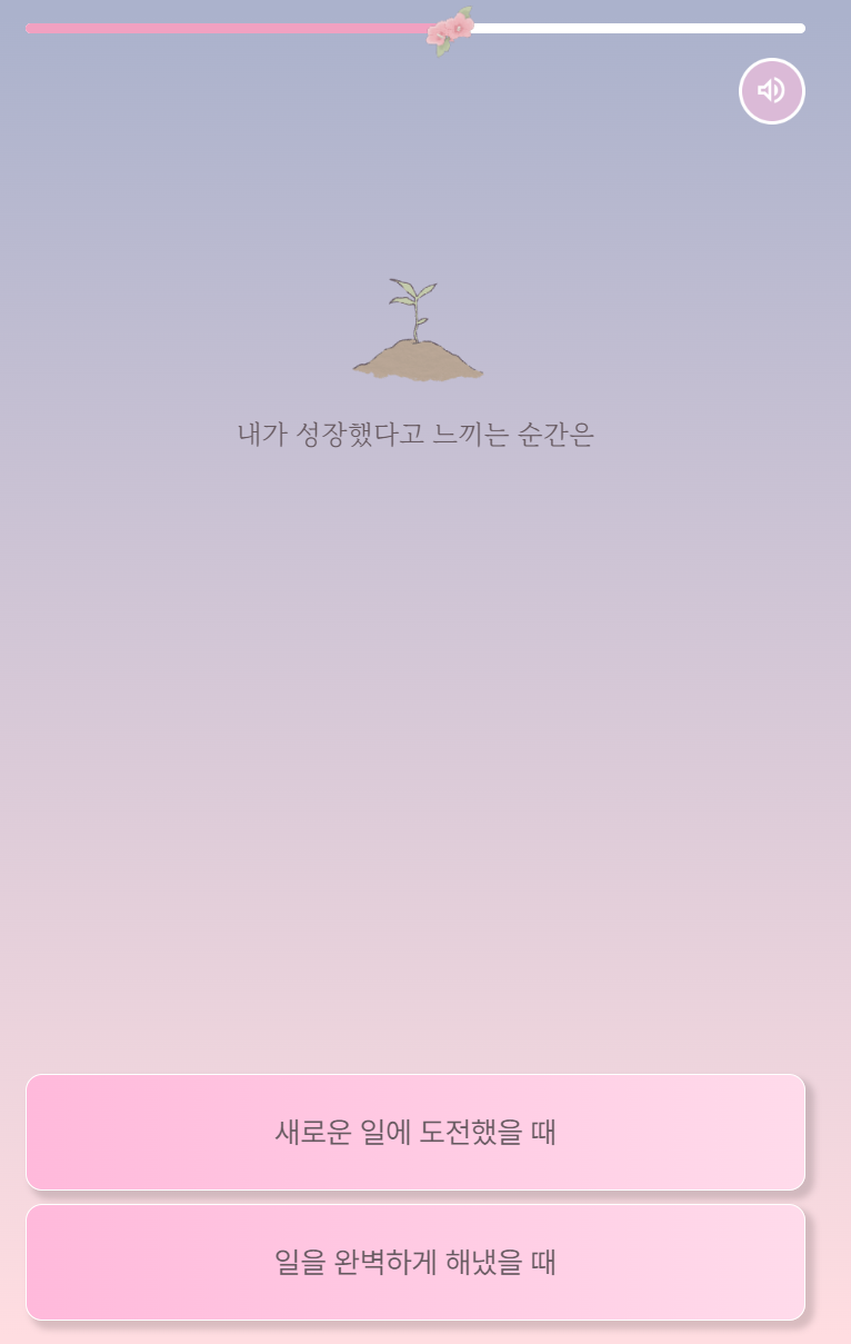 다른 테스트와 달리 꽃말 테스트에는 오른쪽 위의 상단에 스피커 모양이 있습니다.