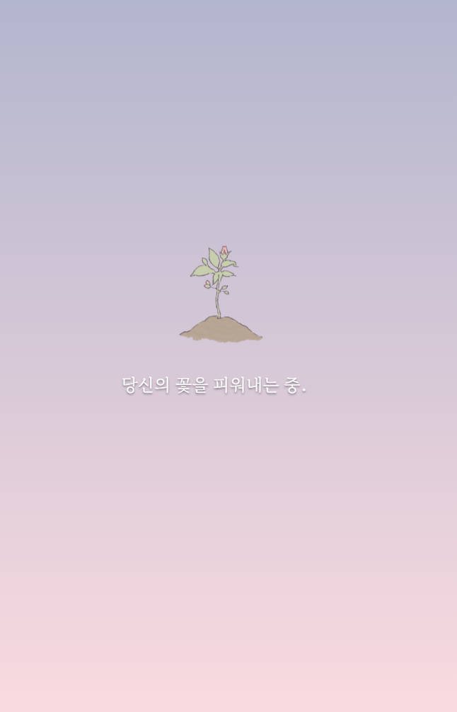 화면을 한 번 클릭을 해 주시면 '당신의 꽃을 피워내는 중'이라고 나옵니다.