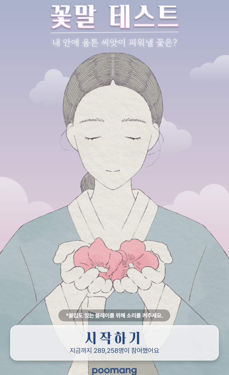 위의 사진에 보이듯이 '시작하기'를 클릭하시면 꽃말 테스트를 실시하실 수 있습니다.