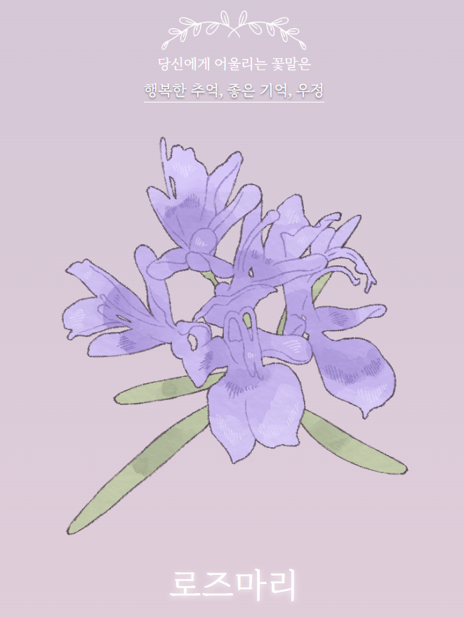 로즈마리: 행복한 추억, 좋은 기억, 우정 / 찔레꽃: 고독, 신중함