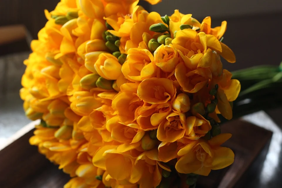 프리지아: 천진난만, 새로운 시작, 순진함 / 수련: 담백, 결백, 신비