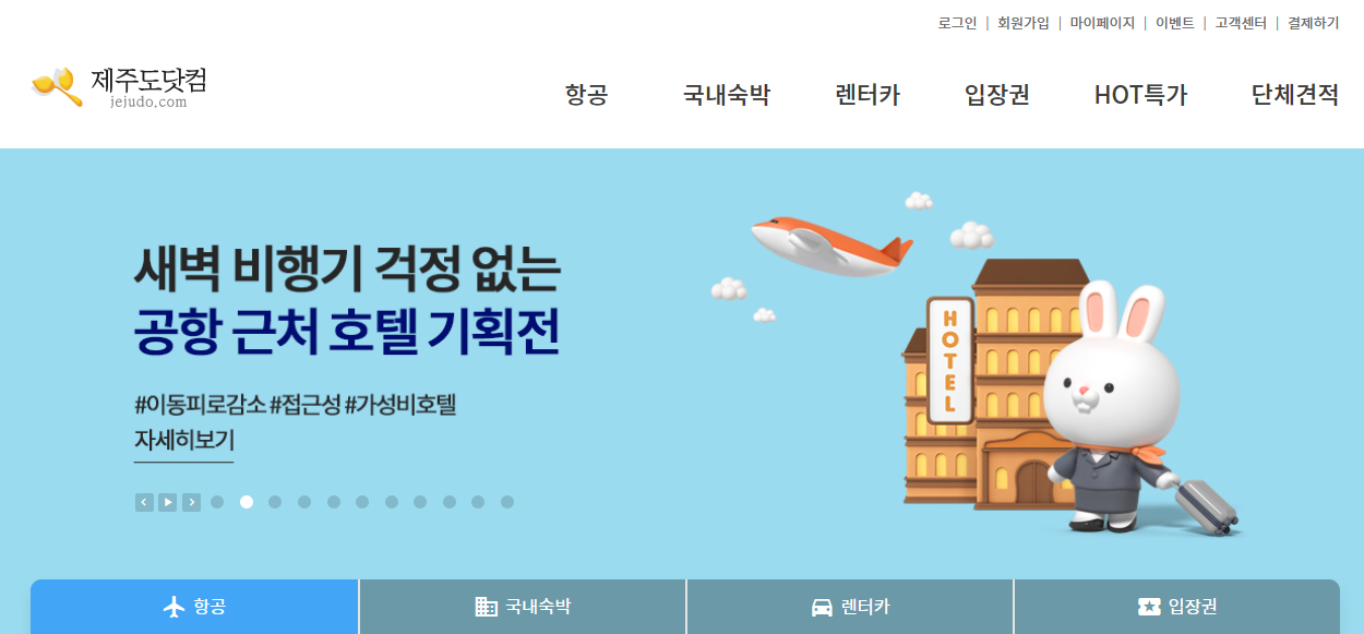 제주도 항공권 '제주도닷컴' 공식 홈페이지는 제주도 여행 전문 여행사, 제주 항공권 실시간 가격비교, 국내 최저가 항공권 비행기표 예매, 제주공항 인근 호텔, 풀빌라, 펜션 특가, 제주렌트카(고급&완전자차) 예약, 입장권 등 제공됩니다.